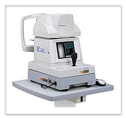 前眼部、眼底、眼圧すべてを評価するのに必要な顕微鏡です。結膜、角膜、前房水、虹彩、瞳孔、水晶体が観察でき、専用のレンズを用いることで更に奥の硝子体や網膜も観察できます。患者さんに顎をのせて額をつけてもらって観察します。痛みはありません。
