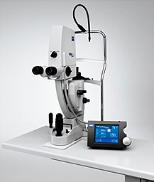 特殊なレーザーで濁った後嚢を切開し、再びよく見える状態に戻します。また緑内障の場合は房水の流れを是正します。レーザーを用いて外から行うため、皮膚や粘膜の切開は必要としません。レンズを目にあて、レーザーを照射するだけで済みます。